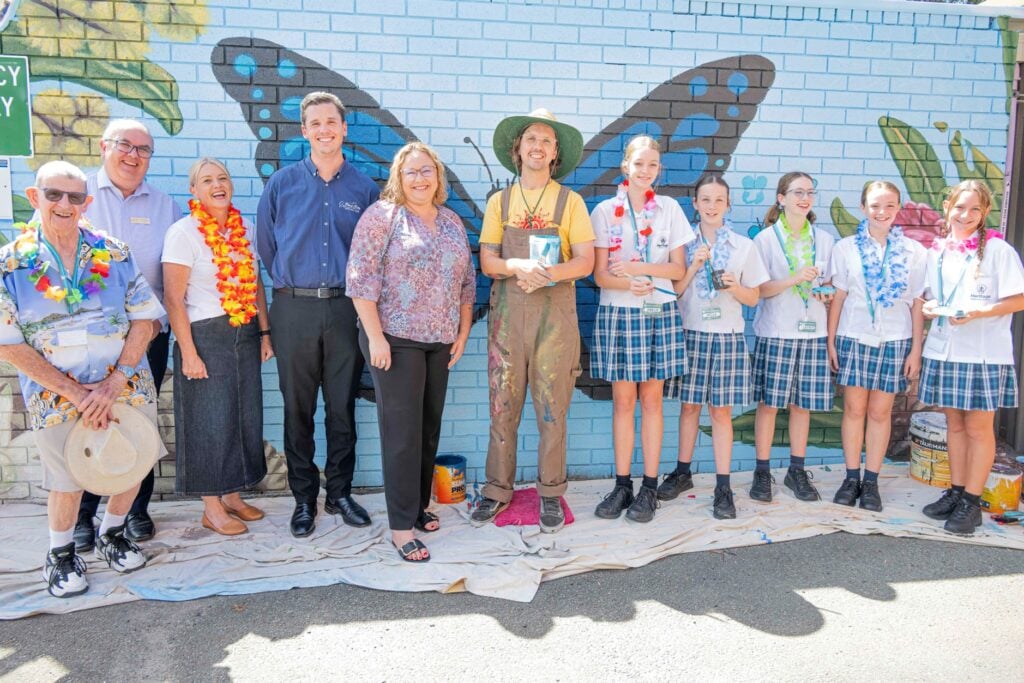 The centrepiece of the festivities at Garden Village, the Not For Profit operator of retirement living, aged care, home care and disability support, in Port Macquarie, on the NSW mid-North Coast, was a butterfly-inspired mural by award-winning local artist Brad Collins.