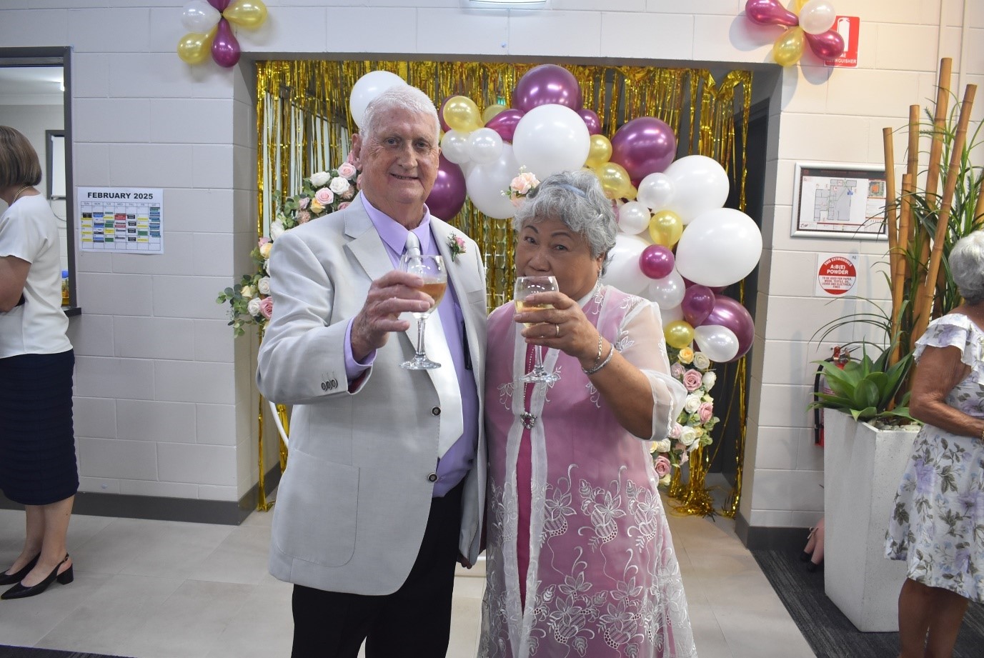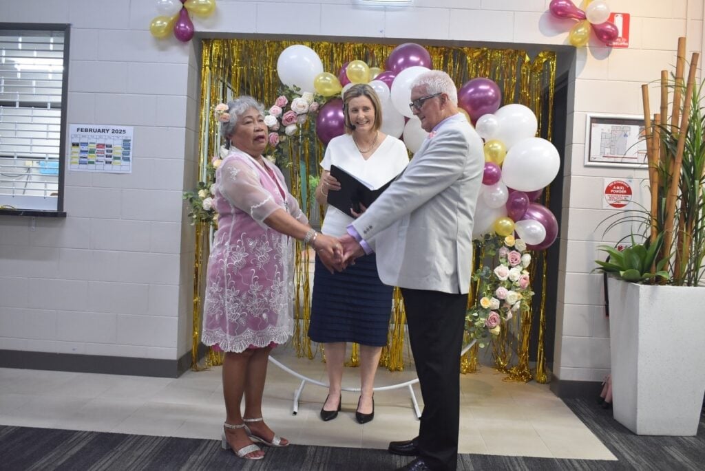 Neville Grunske and Fely Dawes tied the knot on Valentine’s Day at Bolton Clarke Rowes Bay Retirement Village in Townsville, Queensland, surrounded by friends, family, and their village community.