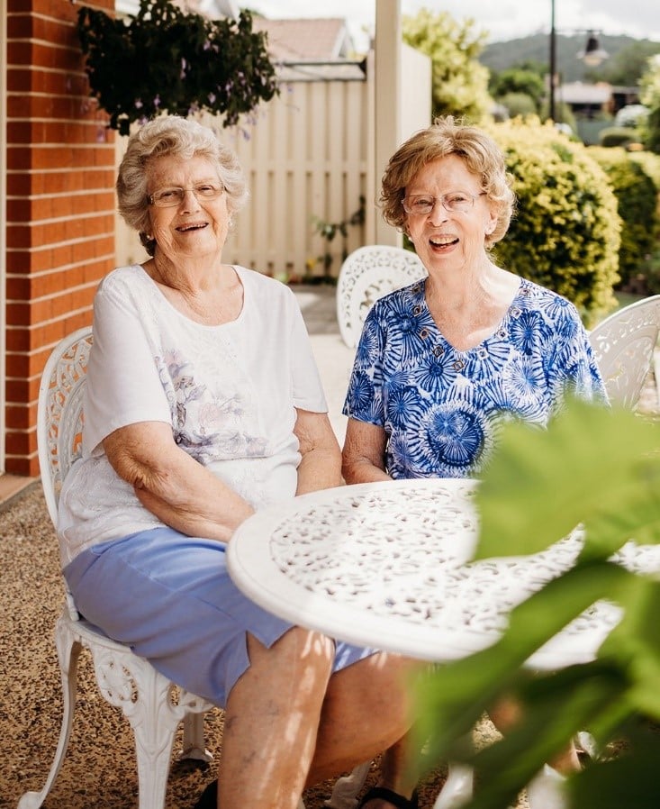 Jean Miller (left with her friend of 50 years Del Wood) was only 61 when she and her husband Reg moved into Carinity Wishart Gardens retirement village in the suburb, 14km southeast of Brisbane’s CBD, 28 years ago.