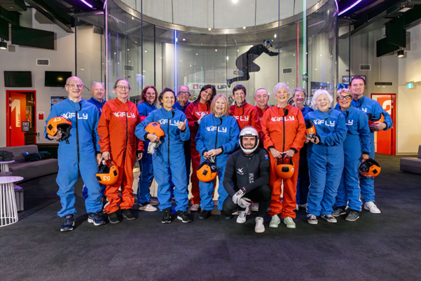 Twelve of them, eldest 87, elected for indoor skydiving and they did it with Retirement Living Council Executive Director Daniel Gannon as special guest at iFLY at Penrith.