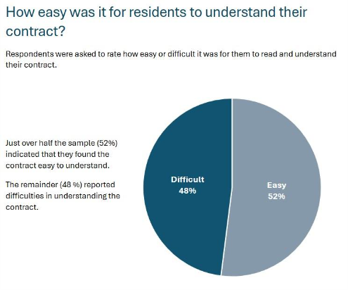 However, the study, conducted by the Retirement Village Residents Association (RVRA), also revealed that many residents struggle with contract complexities – particularly around exit fees and financial transparency. In fact, 63% of residents don’t fully understand how their exit fees are calculated.