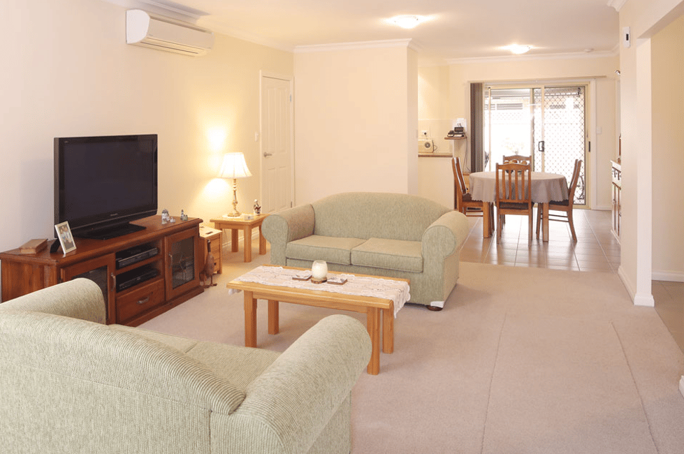 Available now. Villa 51 is ideally located within a close distance to the community centre, This popular three-bedroom design features open-plan living, a spacious bathroom, an additional toilet, and inbuilt storage. It has been designed for comfort and ease of living (now and in the future). It comes equipped with a modern kitchen and air-conditioning. A fully enclosed single garage with remote roller door and rear patio area to entertain family and friends. Well behaved pets are welcome.
