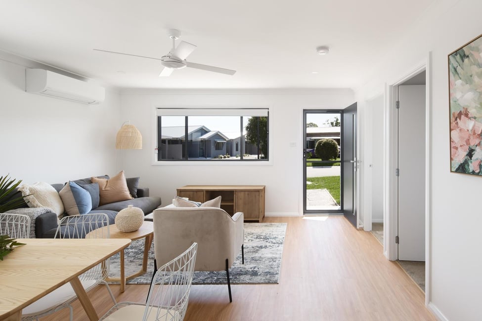 Welcome to the "Freshwater" at Sweetwater Grove Lifestyle Community in Tomago. Secure it now, move in soon! Your brand-new home is being built - reserve today to guarantee your place in our newest stage. Sweetwater Grove is an over 50s Land Lease Community owned & operated by Aspen Lifestyle & just moments away from Greater Newcastle regions. Set amidst natural surroundings, Sweetwater Grove provides the perfect setting for those who are over 50 seeking an affordable, low-maintenance lifestyle. The Freshwater features: • 3 bedrooms, all with built in wardrobes & ceiling fans • Ensuite & split system air-conditioning to main bedroom • Spacious living room with ceiling fan & second split system air-con • Modern kitchen with stone breakfast bar, dishwasher & electric cooking • Large main bathroom with oversized shower • Internal laundry with external access • Ceiling fans & downlights throughout • Hybrid flooring in living areas, carpet in bedrooms. Downlights throughout. • Double side by side carport & garden shed • 3.5kW solar system & energy efficient heat pump hot water system Inspections by appointment. Call Brooklyn 0415 761 123 The benefits of buying into Sweetwater Grove Over 50s Land Lease Community: • All land lease residents are over the age of 50 • A growing community with future plans to expand & upgrade amenities • Access to our community facilities such as Clubhouse, Pool, Tennis court & BBQ area • No stamp duty • Affordable weekly site rental • No council rates • Pet friendly *on application • Rental assistance (eligibility applies) Disclaimer: Images used in advertising are indicative only and may show a similar home, not the exact home for sale. Furnishings are for illustrative purposes only and are not included in the unit. All information provided is believed to be accurate at the time of publication but is subject to change without notice. Buyers should make their own enquiries and obtain independent advice to verify all details, including specifications, features, and availability.