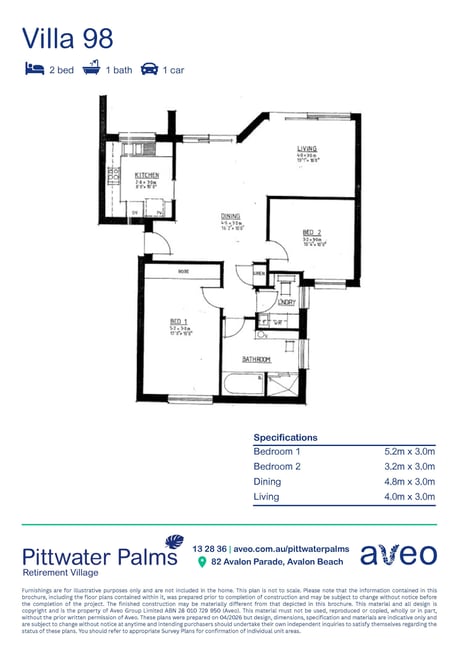 Retirement living at its best! Welcome to Unit 98, nestled in a peaceful and lush setting with beautiful reserve views. This renovated 2-bedroom property is ready for you to move in, featuring high-quality finishes hand-selected to support you in your next chapter of retirement. Wake up each morning to serene, leafy vistas and enjoy the tranquillity of nature right from your own home. This sought-after unit offers direct access to Pittwater Palms amenities as well as nearby shops and cafes, placing everything you need right at your doorstep. Property Features: - Turn-key two-bedroom unit - Renovated kitchen and bathroom - Bright and airy open-plan living area - Spacious bedroom with built-in-wardrobe - Large private balcony - Lock up Garage Community Features: - Heated swimming pool - Spa - Community centre - Library - BBQ area - Billards room - Creative art room - Registered Nurse on site for peace of mind About Pittwater Palms Retirement Village: Pittwater Palms is situated amongst landscaped tropical gardens in Avalon, providing all that coastal living has to offer. The village is nearby shops, cinemas, library and post office, and is close to Avalon Golf Course, the bowls club and the beach. Enquire today to find out more about living at Pittwater Palms. Our friendly sales team will be happy to meet with you, take you on a tour of the community and answer any questions you may have. About Aveo Retirement Villages: For over 40 years, Aveo has been dedicated to delivering the best retirement living options for Australians. Whether you're looking for a low-maintenance lifestyle in a vibrant and social community or perhaps a community offering a little more support, we're here to help you find the right fit. Payment options available: As a Freehold unit, this property can be purchased under the traditional Deferred Management Fee contract only. Disclaimer: This property is currently under renovation. You may have to pay a departure fee when you leave this village. You may have to share any capital gains received with the operator of this village. Furnishings are for illustrative purposes only and are not included in the unit. (village-id-10)