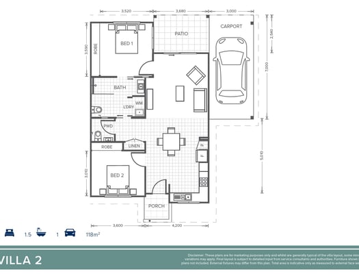 This two-bedroom villa offers all the comforts of low-maintenance living. The open-plan kitchen and living area lead to a private covered patio perfect for enjoying the fresh air without outdoor upkeep. The bedrooms are bright and well-sized, with a modern bathroom and a convenient powder room.