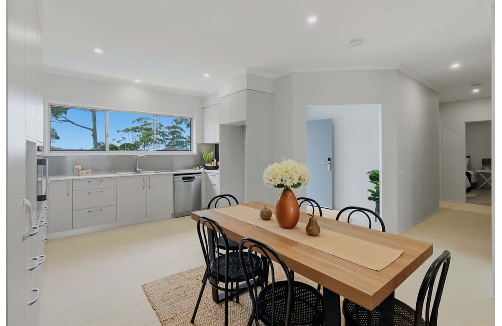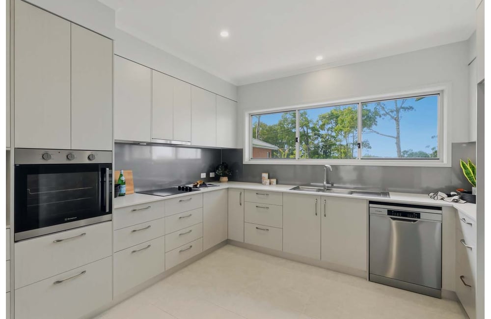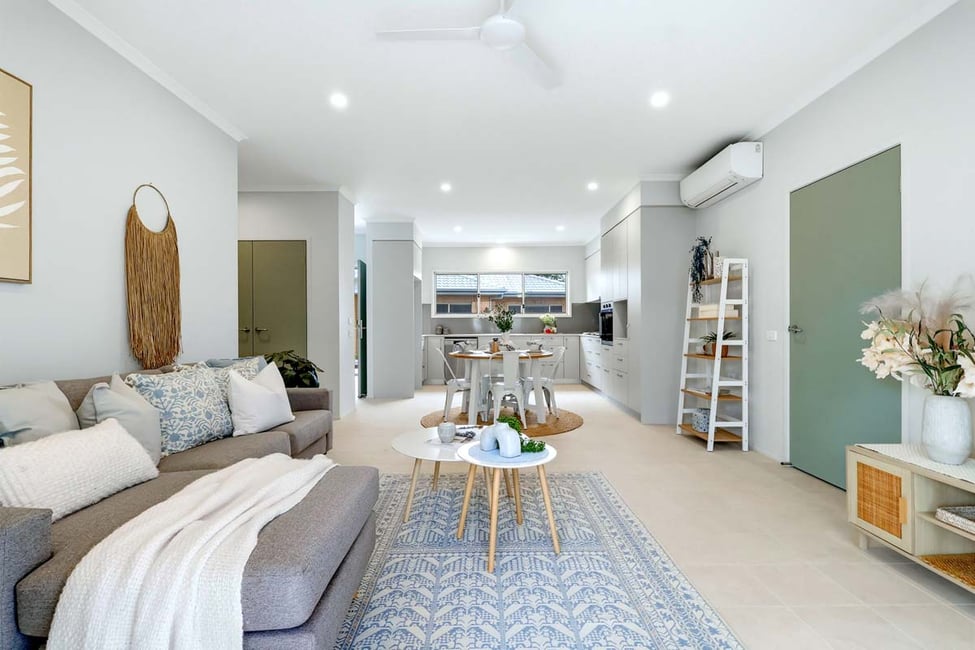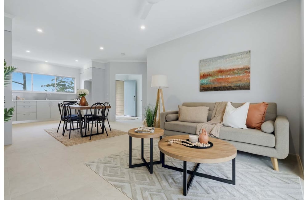 The open-plan living and dining area connects to a contemporary kitchen fitted with quality appliances. A private porch and outdoor area create a relaxed outdoor space, while air conditioning, an internal laundry, drying court and secure single garage add everyday convenience.