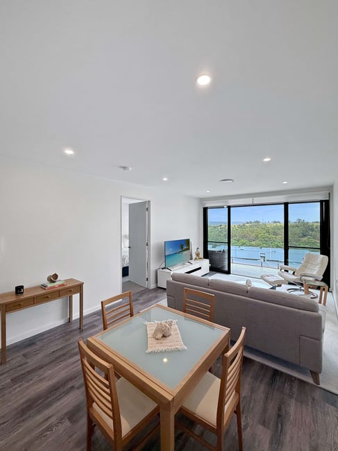 The generous layout features a combined living and dining area complemented by a modern open-plan kitchen, European laundry, large linen cupboard, and a thoughtfully designed bathroom catering to mobility access, ensuring comfort and practicality throughout.