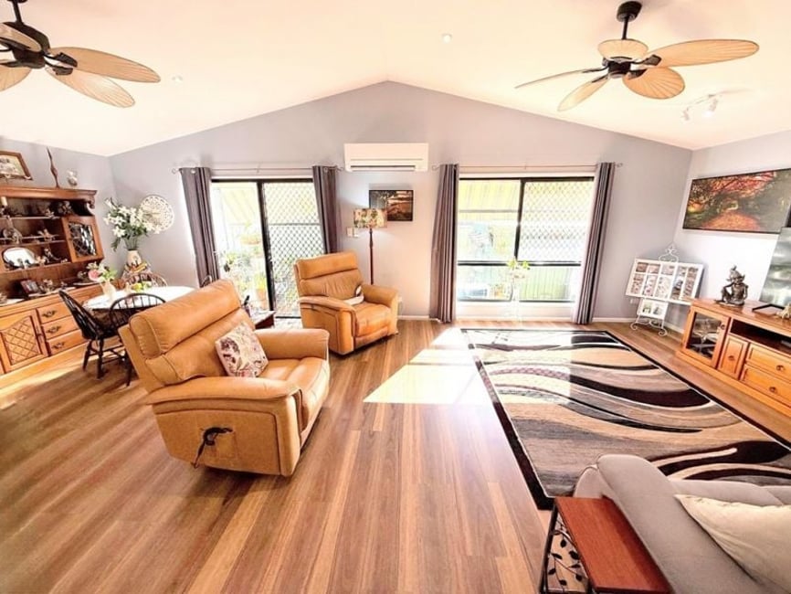 Green Wattle Community. Fabulous upgraded home featuring generous open-plan living/dining area & 3 spacious double bedrooms. Aircons in living room & main b/room & ceiling fans throughout. Large easy-care fenced private backyard. Generous carport, storage room & front veranda add convenience. Set in a vibrant over-50s village known for its strong community spirit and great activities. Home that feels instantly welcoming - this gem won't last long—call today to inspect! 3 Double Bedrooms Solar Hotwater & Electricity Great Size Open Plan Living Large Yard/Watertank Aircon in Living Room