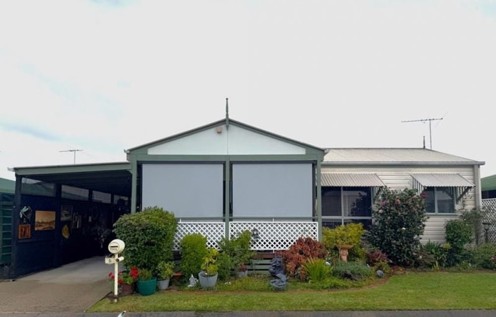 Green Wattle Community. Spacious, sunny veranda with sunshades off the living area. Extra-large yard in a quiet street. Bright open-plan living and kitchen with great storage. Two double bedrooms. Fully enclosed garage with electric door, plus workshop/storage room. Set in a vibrant over-50s village known for its strong community spirit and great activities. Call to inspect — won’t stay long! Enclosed Garage & el door Covered Carport Great Open Plan Living Indoor/Outdoor Flow, Big Yard 2 Tollets