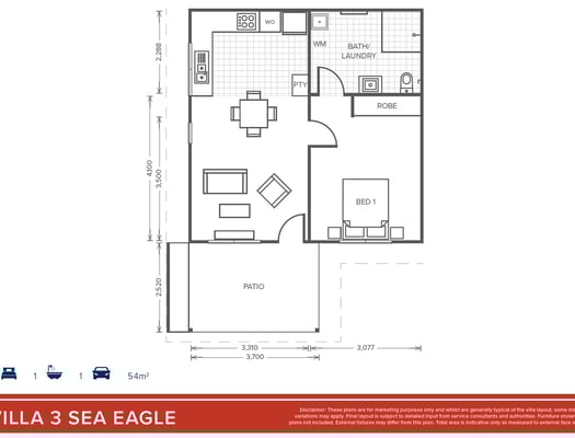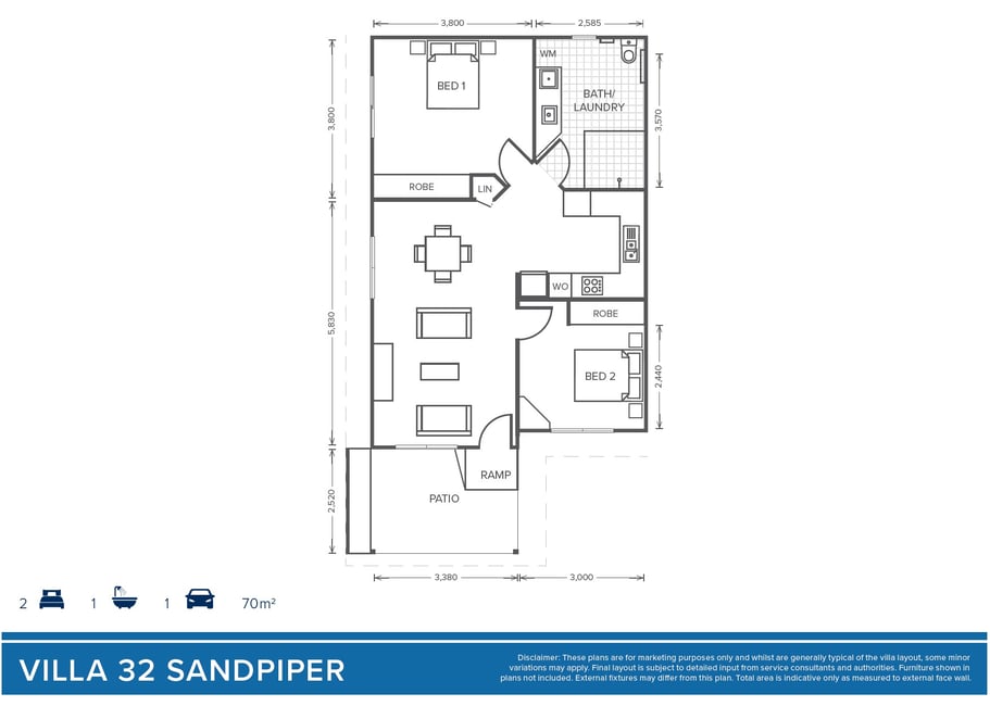 Villa 32 is a thoughtfully designed, low-maintenance home offering two spacious bedrooms and quality fixtures, fittings and appliances throughout. At the heart of the home is an open-plan living and dining area, creating an inviting environment for everyday living and entertaining.