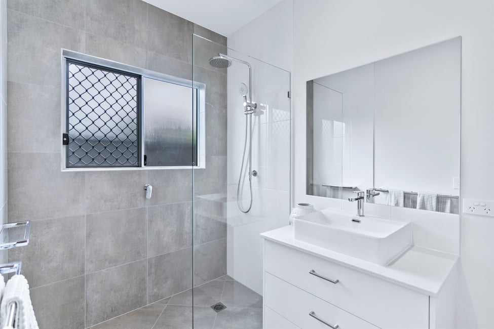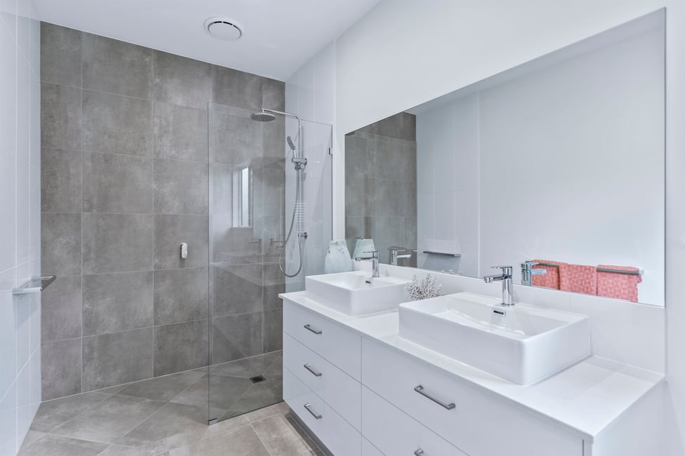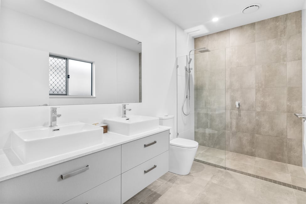 20mm stone benchtops on custom-made vanities