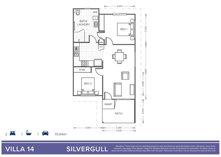 Free of steps, our villas are thoughtfully and stylishly designed and built for seniors. The Silvergull contains all the comforts and features for you to enjoy safe, comfortable and easy living. The villas comprises modern, quality fixtures, fittings and appliances throughout including reverse cycle air conditioning and insulation for all year-round comfort.