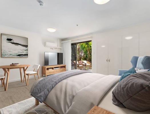 Designed with downsizing in mind, Levande’s two‑bedroom independent living villas combine comfort and practicality. Each home features open‑plan living, a contemporary kitchen, built‑in wardrobes, a private courtyard, and a single lock‑up garage.