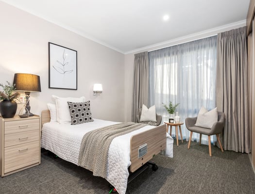 Rooms are clustered with small dining and lounge areas, providing opportunities for families to meet for private leisure time, and creating a sense of community. Professionally landscaped garden areas and courtyards are protected, secure, safe, and accessible. There is generous building space per resident, excellent security, monitored fire safety and sprinkler systems. Worship services are regularly conducted.