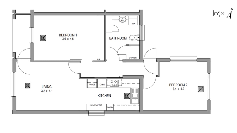 Two Spacious Bedrooms: Offering plenty of room for rest and relaxation