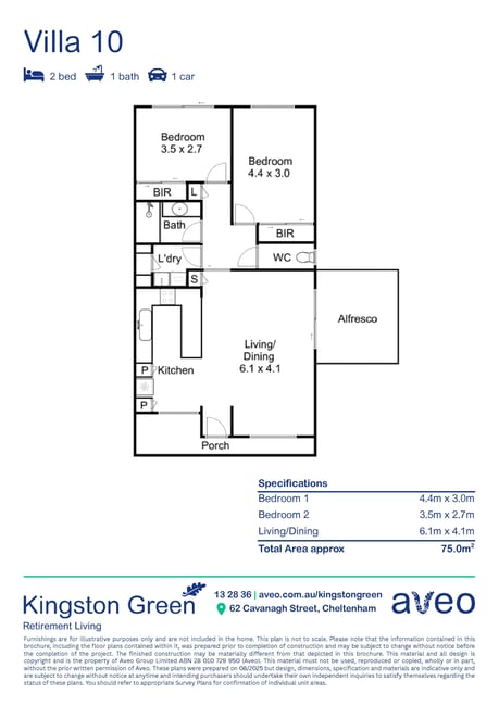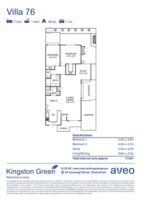 Kingston Green Retirement Living is a friendly community set in a location and spread across beautifully landscaped grounds and gardens. Located in Cheltenham, close by are Aldi Southland, Cheltenham Golf Club, Chesterville Day Hospital and Kingston Heath Golf Club. You're just minutes away from the Nepean highway, Southland train station and a reliable bus network. You can indulge in some retail therapy at nearby Westfield Southland or take a walk through Sir William Fry Reserve.