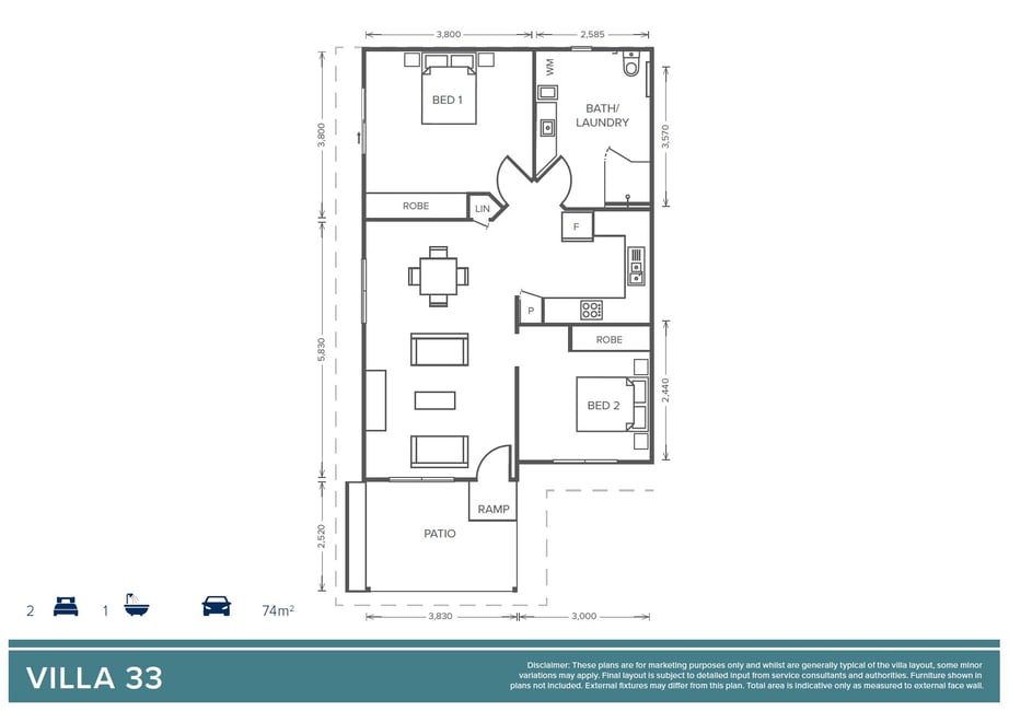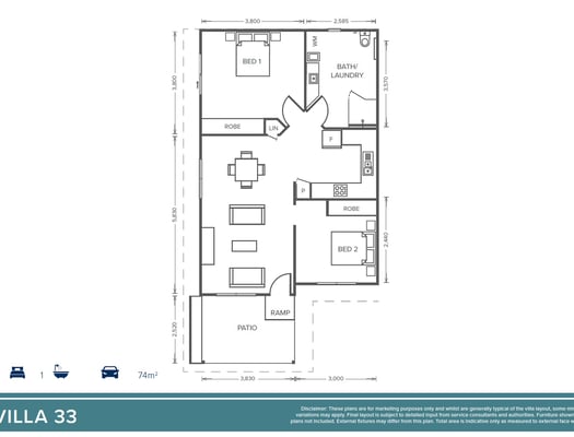 Villa 33 - 2 Bedroom + 1 Bathroom