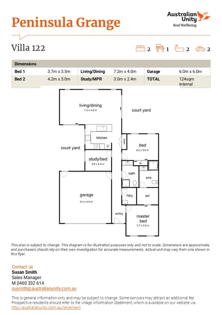 This is general information only and may be subject to change. Some services may attract an additional fee. Prospective residents should refer to the village Information Statement, which is available on our website via http://australianunity.com.au/retirement