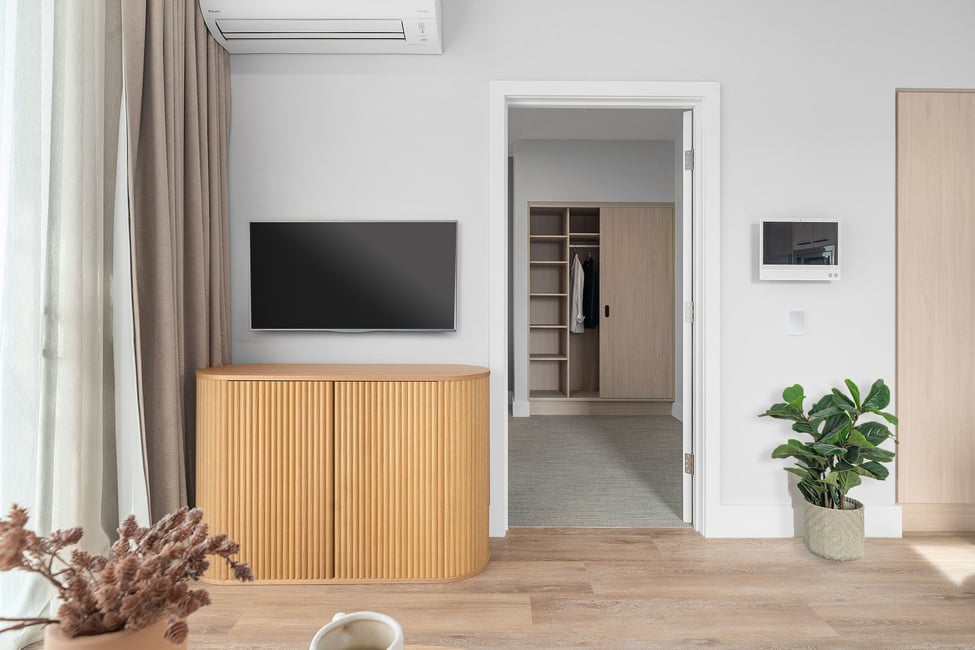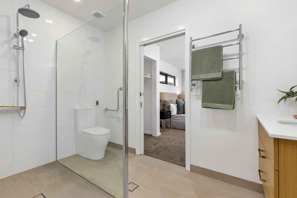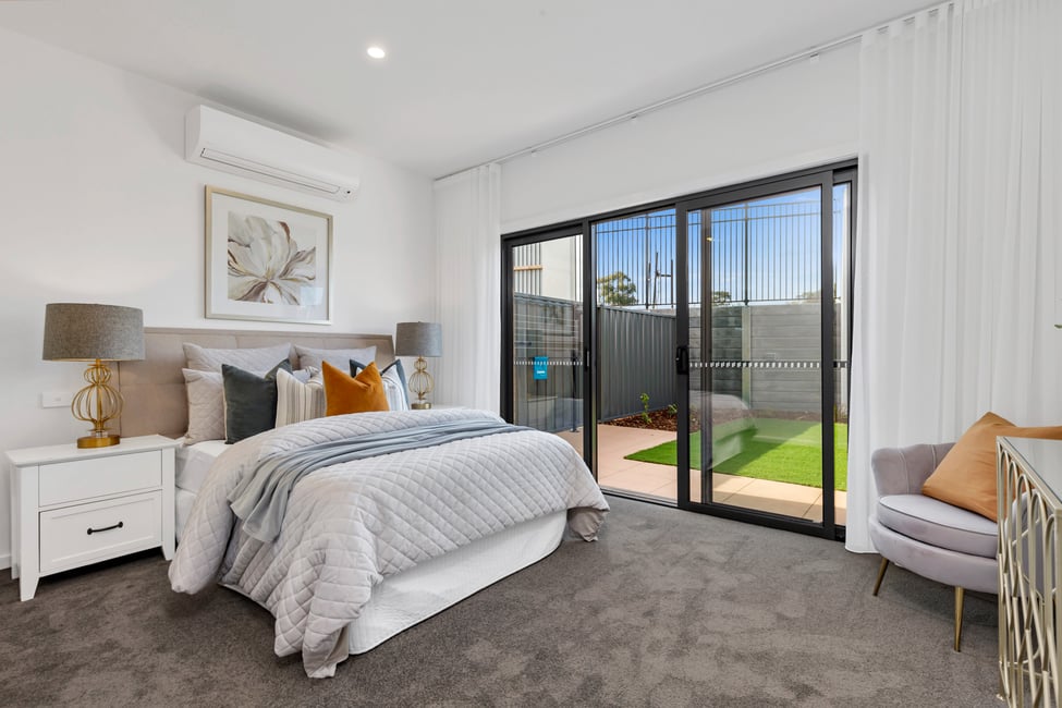 These single-storey, double-glazed, two-bedroom homes include a bathroom, powder room, and two individually operated split air systems, one in the living area and the other in the master bedroom. The master bedroom comes with a spacious walk-in wardrobe and ensuite access, providing privacy and convenience.