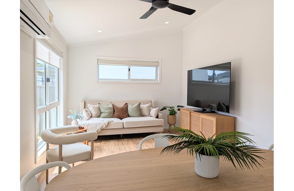 This well-located one-bedroom unit with study is move-in ready. Enter from the front deck into a light-filled open-plan living and dining area adjoining a well-equipped kitchen with ample storage. Comfort is assured year-round with split system heating/cooling and a heat bank heater.