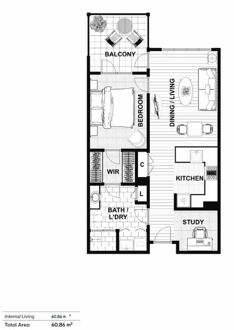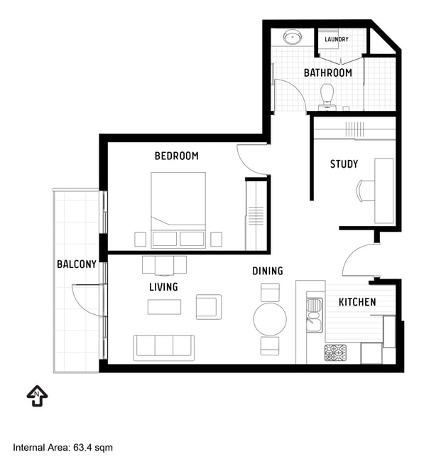 Fully Reinstated One-Bedroom Plus Study with Balcony