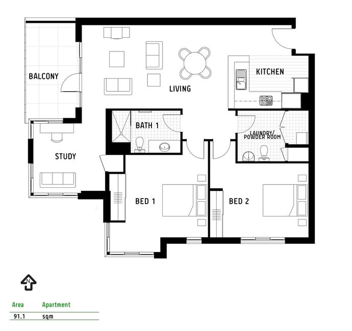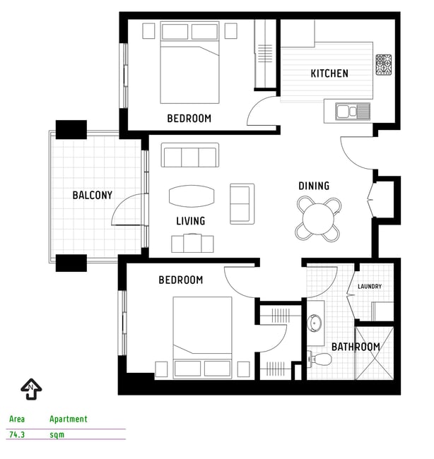 Stylish North-Facing Haven with Private Leafy Balcony