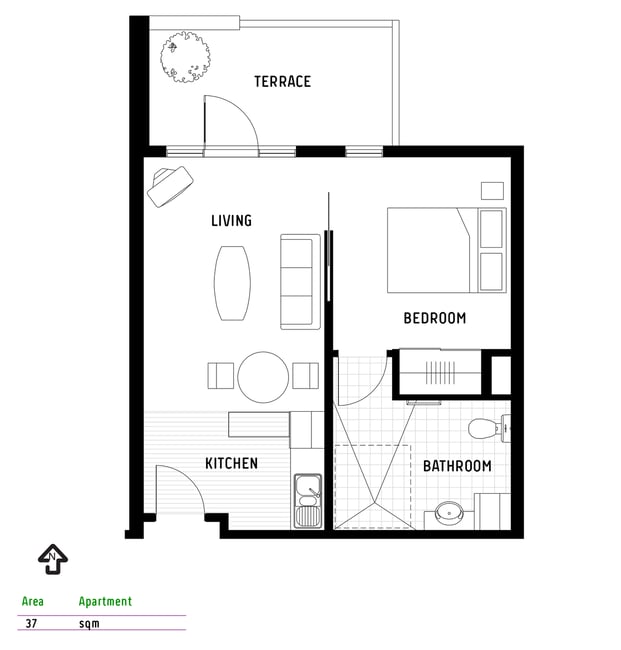 Bright, East-Facing Apartment with Terrace and Modern Kitchen
