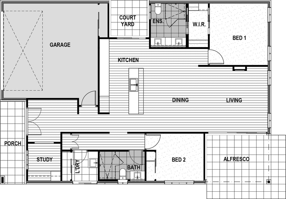 Offering two comfortable bedrooms, the home includes a stylish study with built-in cabinetry, perfect for working from home or creative pursuits.